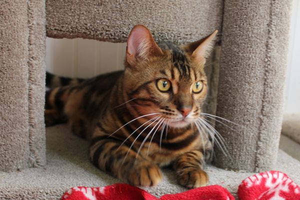 Nightwing is a spotted charcoal bengal cat that also carries for snow. He can produce Charcoal, Brown and Snow Bengal KIttens.